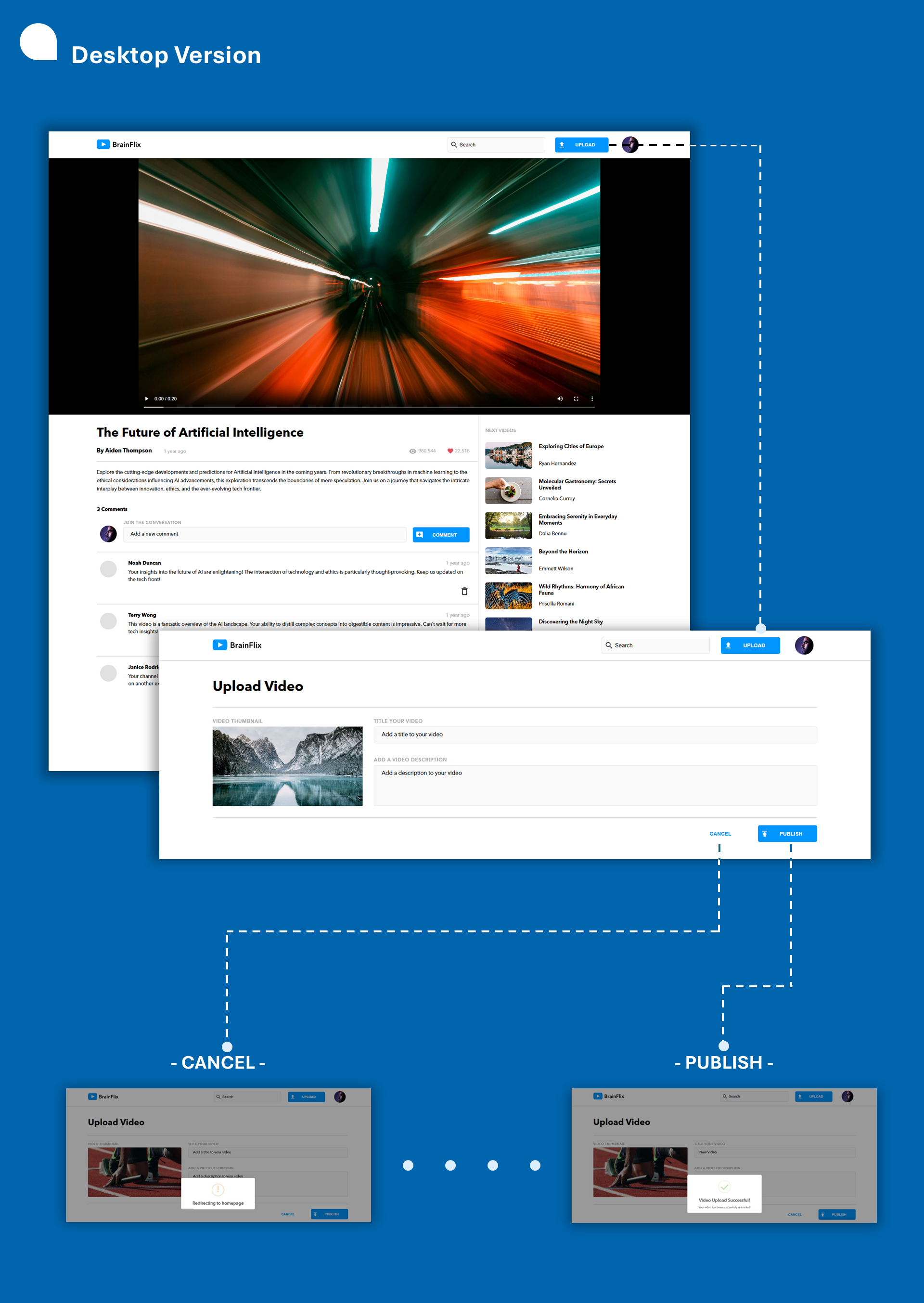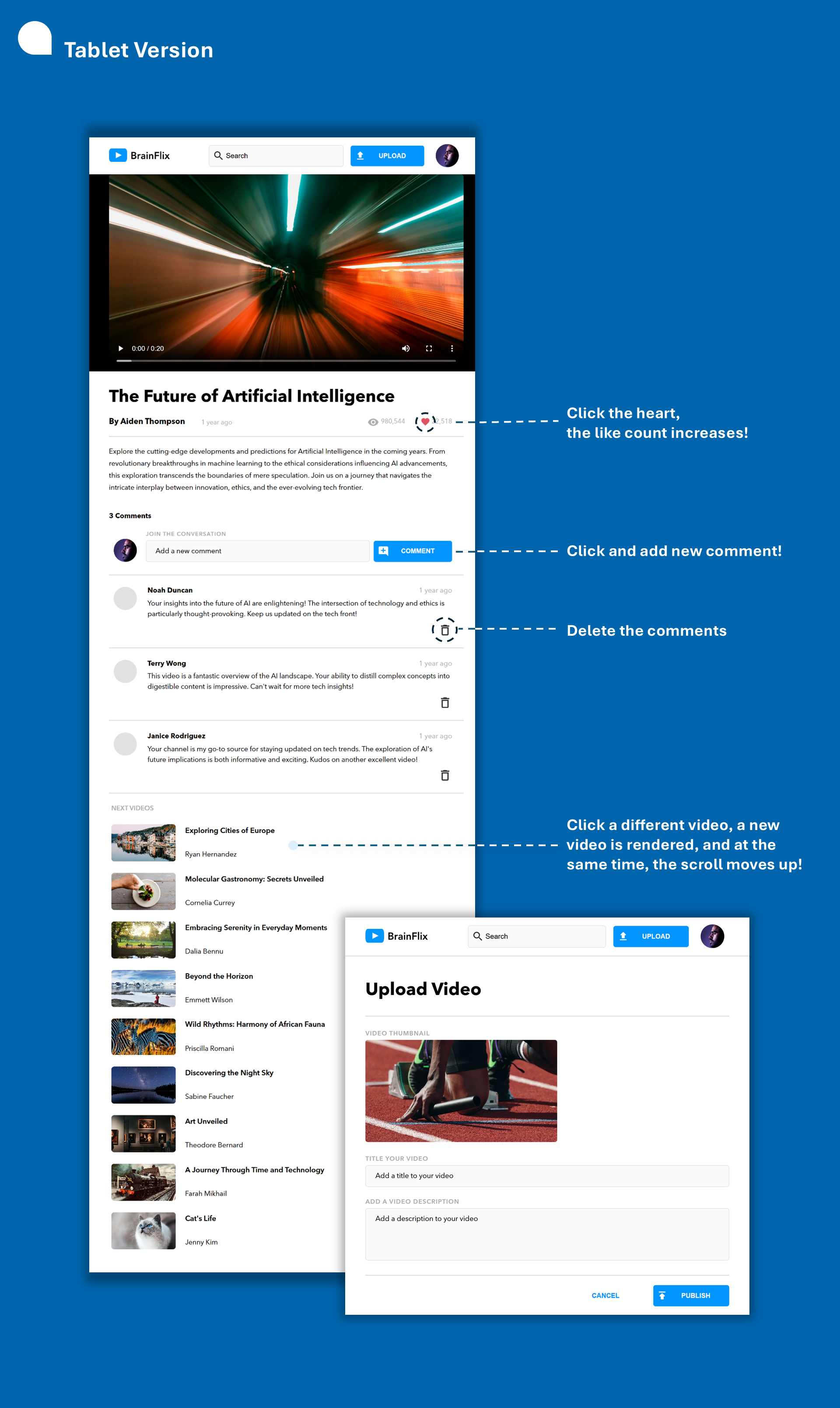 The main page of the BrainFlix project is designed to allow users to